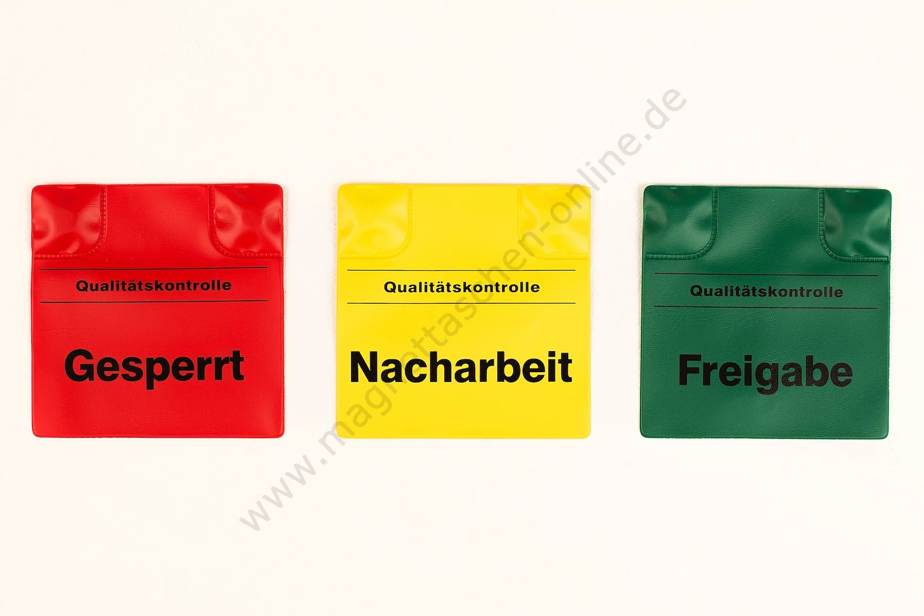 Die Magnetpads werden standardmäßig in drei Farben angeboten (rot "Gesperrt", grün "Freigabe" und gelb "Nacharbeit"). Andere Farben gerne auf Anfrage. Ab einer Bestellmenge von 100 Stück kann bei der Farbauswahl auf individuelle Wünsche eingegangen werden.
